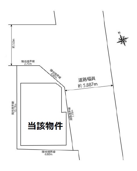 | 私道負担・道路 | 東側5.8m公道に接道、北側5m私道に接道 |